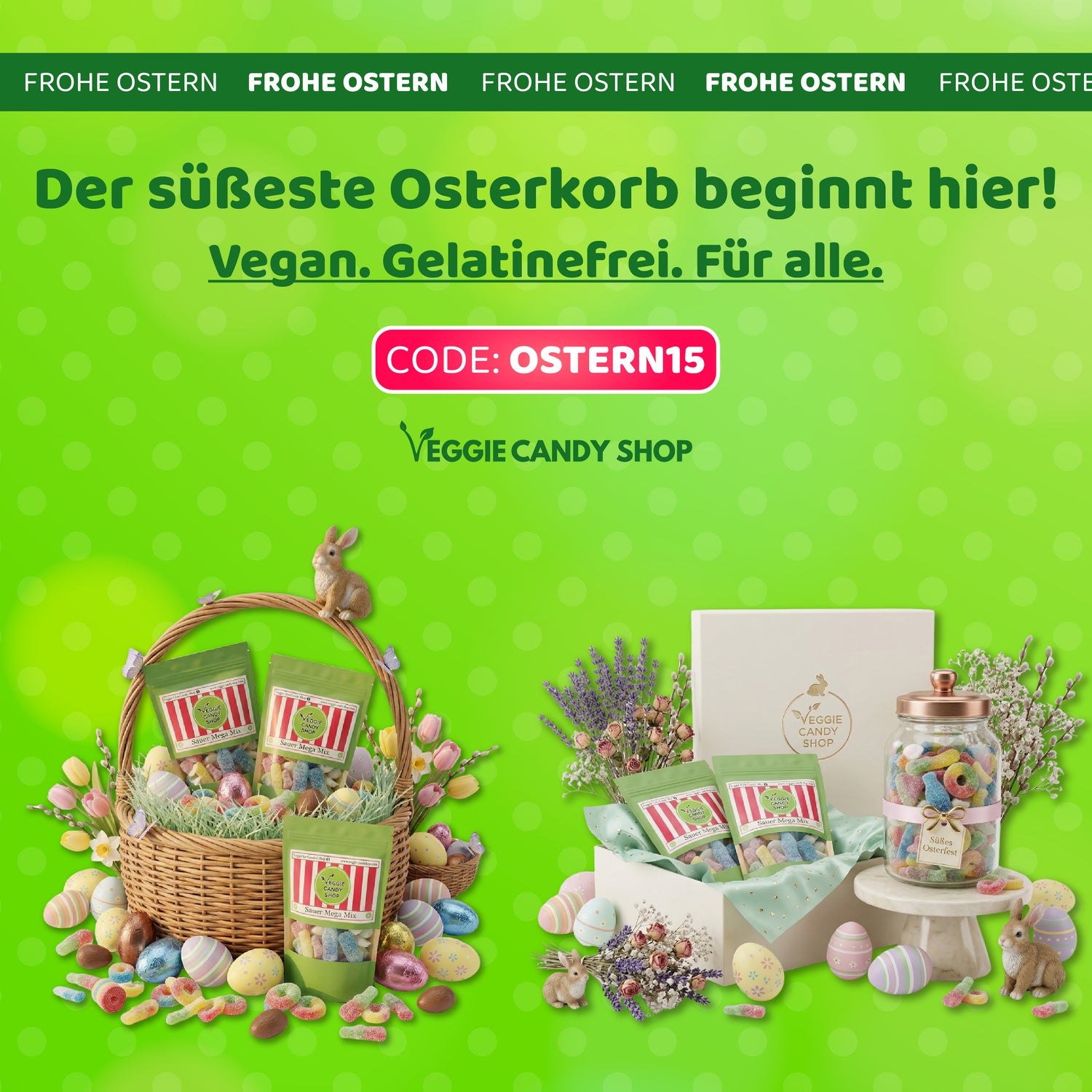 Nur über 50 vegane und gelatinefreie Sorten die einfach schmecken. Für dich, für deine Familie, für alle die dieses Ostern etwas Besonderes verdienen.