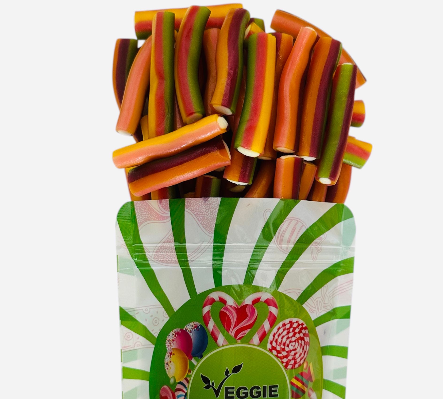 Zutaten: Zucker; Glukosesirup; WEIZENMEHL; WEIZENSTÄRKE; Palmfett; Dextrose; Emulgatoren: Mono- und Diglyceride von Speisefettsäuren, Citronensäureester von Mono- und Diglyceriden von Speisefettsäuren; Säuerungsmittel: Citronensäure; Geliermittel: Carrageen; Säureregulator: Trinatriumcitrat; Sonnenblumenöl; Überzugsmittel: Bienenwachs weiß und gelb; Frucht- und Pflanzenkonzentrate: Karotte, Süßkartoffel, Spirulina, Schwarze Johannisbeere, Holunderbeere, Apfel, Hibiskus, Rettich, Aronia, Traube; Aroma; Holunderbeerextrakt; Farbstoff: Kurkumin.