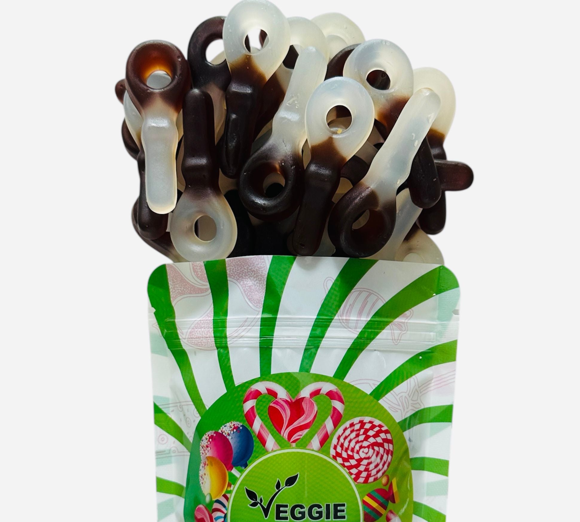 Zutaten: Glukosesirup, Zucker, modifizierte Stärke (Kartoffel), Speisesäuren (Citronensäure, Milchsäure), Verdickungsmittel (Pektine), Farbstoffe (E150c), Aroma, Pflanzenöl (Kokosnuss),Überzugsmittel (Karnaubawachs).