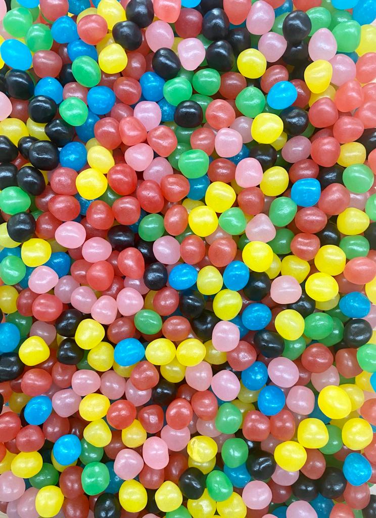 Zutaten: Zucker, Glukosesirup, Stärke, Säuerungsmittel: Zitronensäure, Apfelsäure; Säureregulator: Mono Natriumcitrat, Natriumhydrogenmalat; Aroma, Farbstoffe: Curcumin, Patentblau V, Pflanzenkohle, Pflanzliche Carotines, Anthocyane; Überzugsmittel: Karnaubawachs.