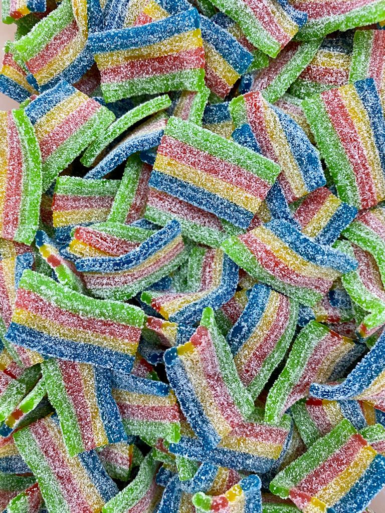 Zutaten: Zucker, Glukose-Fruktose-Sirup, Weizenmehl, Säuerungsmittel (Apfelsäure, Zitronensäure), Dextrose, Palmöl, Aroma, Konzentrat (Apfel, Kürbis, Radieschen, Tomate), Farbstoffe (E100, E133), Antioxidationsmittel (Askorbinsäure, E306). Enthält Gluten.