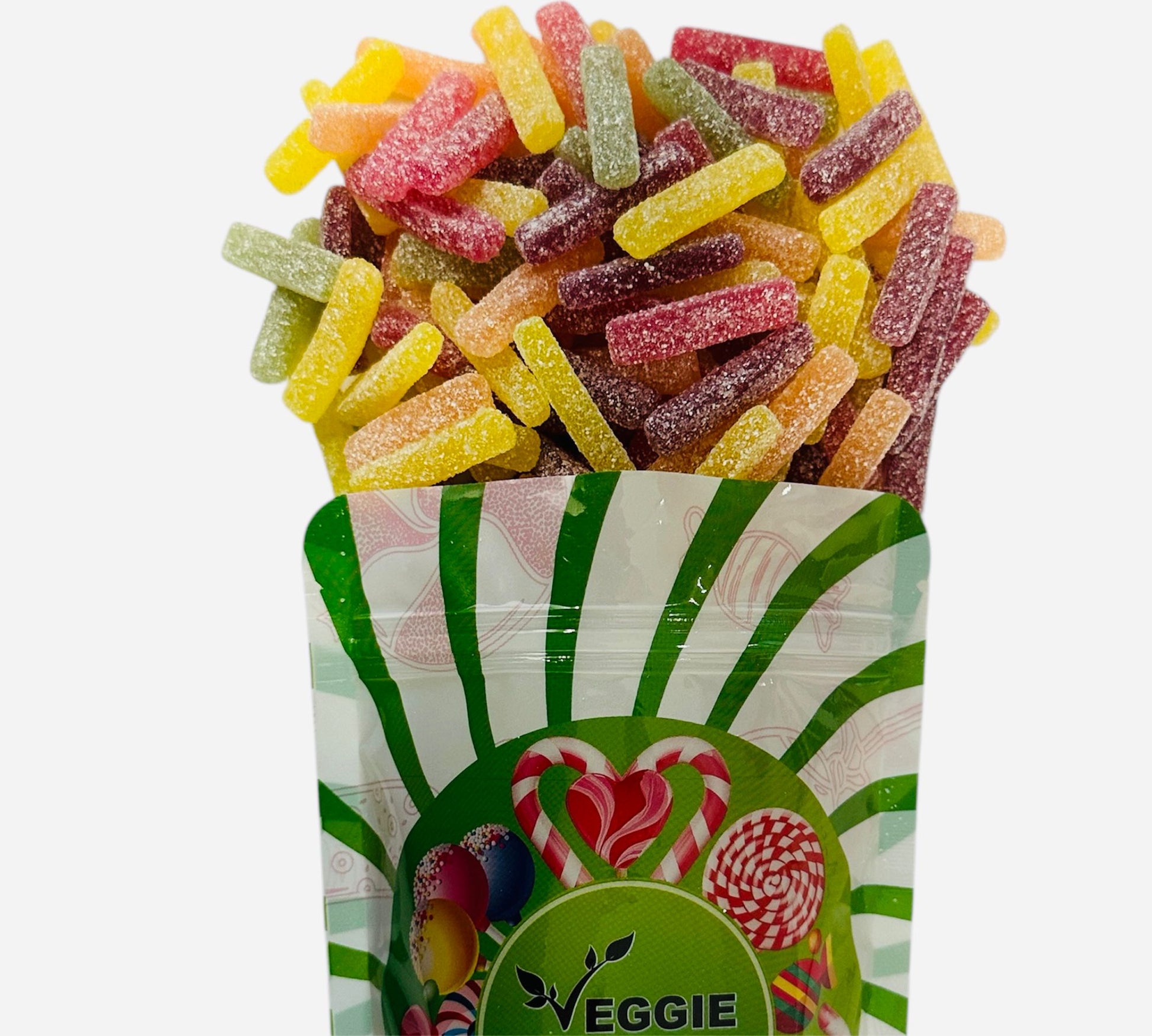 Zutaten: Zucker, Glukosesirup, modifizierte Stärke, Stärke, Säuerungsmittel (Milchsäure, Apfelsäure), Säureregulator (Natriummalate), natürliche Aromen, Konzentrat von (schwarze Karotte, Karotte, schwarze Johannisbeere, Saflor, Spirulina), Farbstoffe (Paprikaextrakt, Kurkumin).