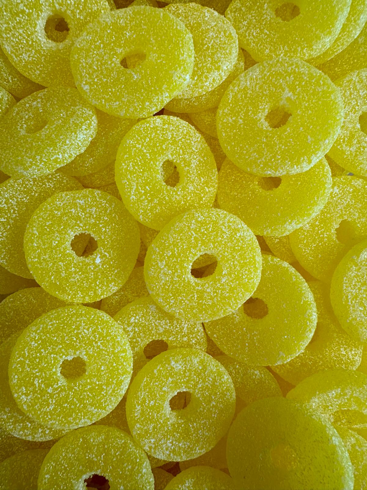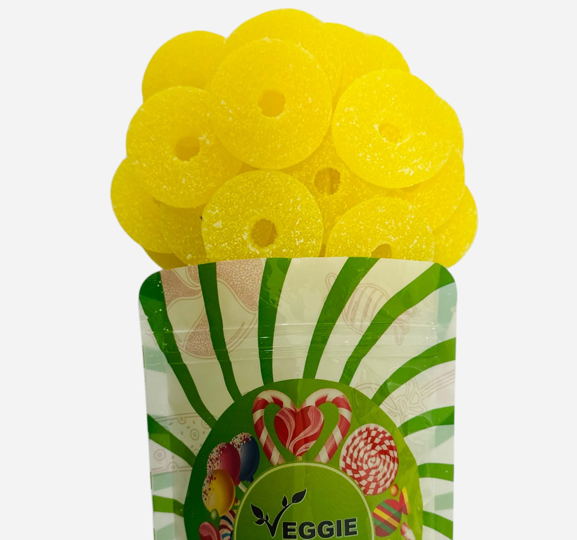 Zutaten: Glukosesirup, Zucker, Modifizierte Stärke (glutenfreier Weizen, Mais, Kartoffel), Säurungsmittel (Apfelsäure, Natriummalat, Milchsäure, Citronensäure), Aroma, Farbstoff (E100).