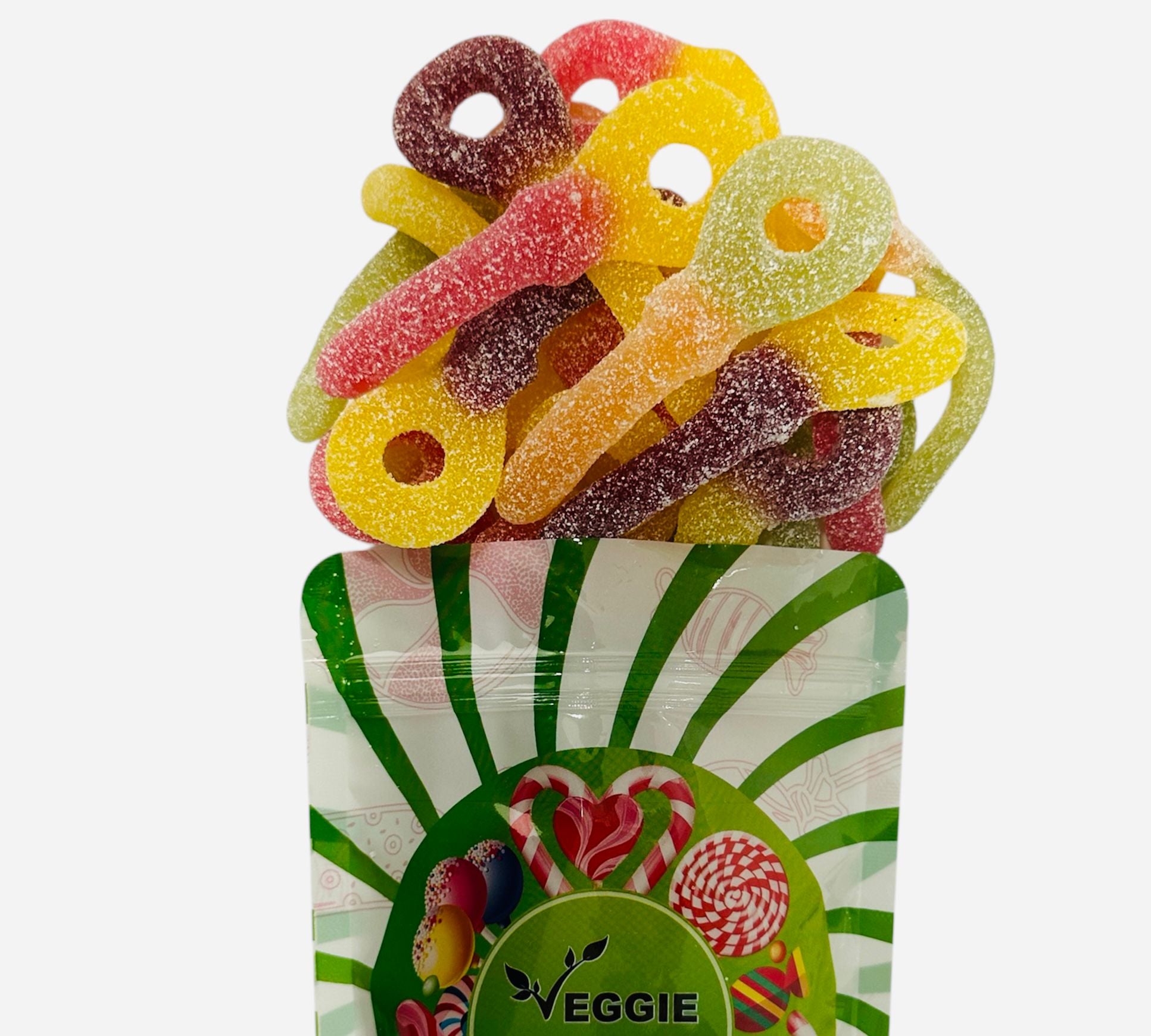 Zutaten: Zucker, Glukosesirup, modifizierte Stärke, Stärke, Säuerungsmittel: E270, E296; natürliche Aromen, Säureregulator (Natriummalate), Frucht- und Pflanzenkonzentrate (schwarze Karotte, Karotte, schwarze Johannisbeere, Spirulina, Saflor), Farbstoffe: Paprikaextrakt, Kurkumin.